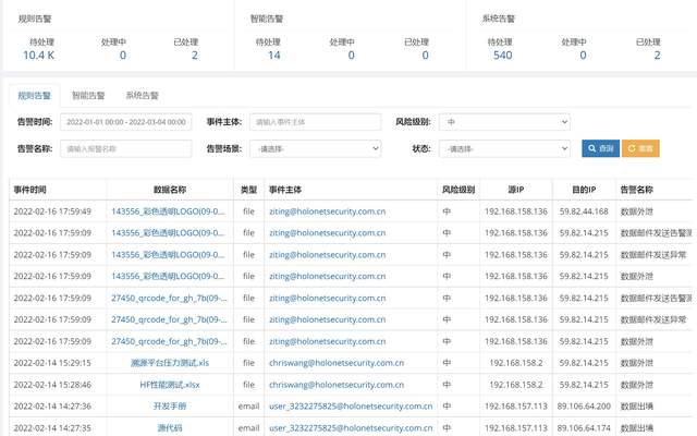 同时提供更详细的出境数据钻取,展示其出境数据列表(文件出境、邮件出境、应用出境),见下图示: