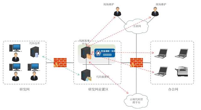 通过多个层次和维度,全面的对数据进行刻画、分析;当发生数据安全事件后,基于全息数据溯源平台提供强大的溯源和取证能力,能够在第一时间快速定位事故原因,提高调查、相应和处理速度。对于数据无序出境、敏感数据泄露严重、数据访问权限混乱、个人敏感信息滥用等等的各种数据安全事件,做到有效精准溯源取证,快速法界定责任,追责去责。 全息数据安全溯源产品基于以上功能,提供不同应用场景的解决方案,下面分别对企业互联网出口监测、单业务系统监测及全面网络监测进行说明: 应用场景①:企业互联网出口 互联网链路是企业敏感数据泄露的主要途径,其内部员工或外包人员通过个人邮箱、网盘等方式进行数据盗取或数据泄露事件频繁发生,因此互联网链路作为一个巨大的风险点需要实时监测起来,如下图示: